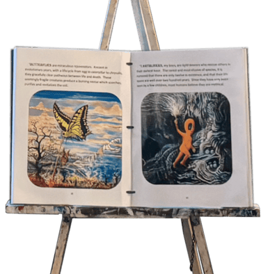 The journey began with paint and canvas. Each painting represents a moment of exploration, a splash of emotion, and a doorway into new worlds. From these vibrant paintings came the story, as the characters came to life the adventures began that would create the book "Colorful Journeys Into A New World."